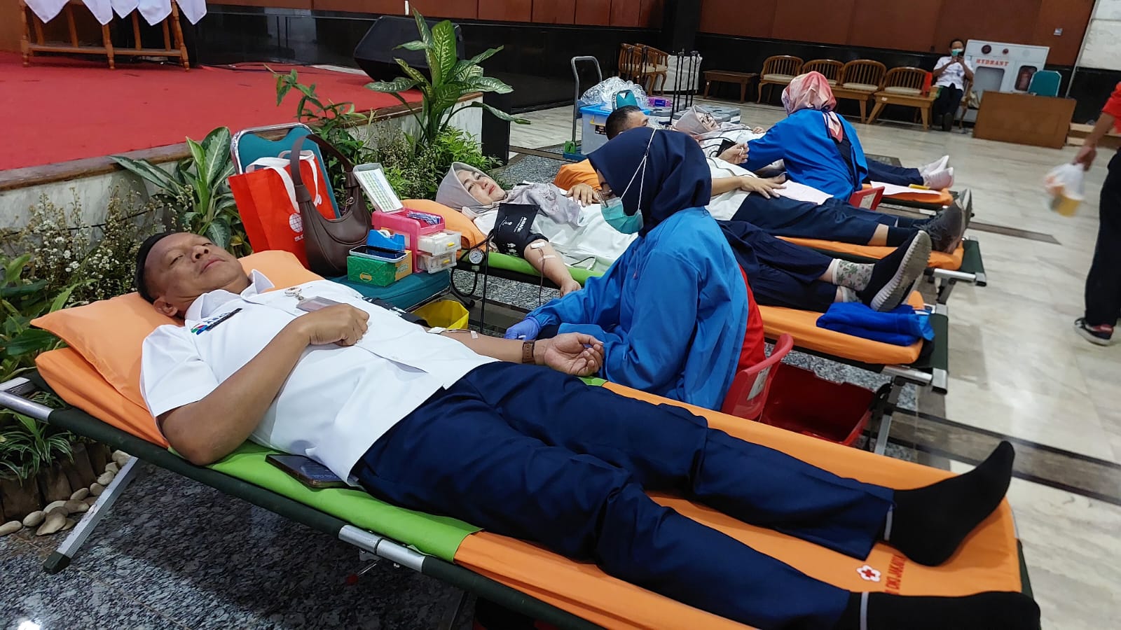 “Kami imbau pegawai yang belum pernah donor darah agar ikut setiap ada kegiatan donor. Mudah-mudahan ini bisa membantu stok darah PMI demi kegiatan kemanusiaan,” ujarnya.